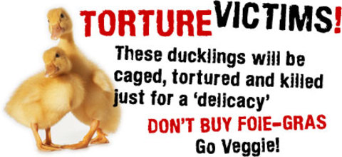 For the uninitiated, here is a brief rundown of what Fois Gras is and why it is so cruel, taken from the Viva website: