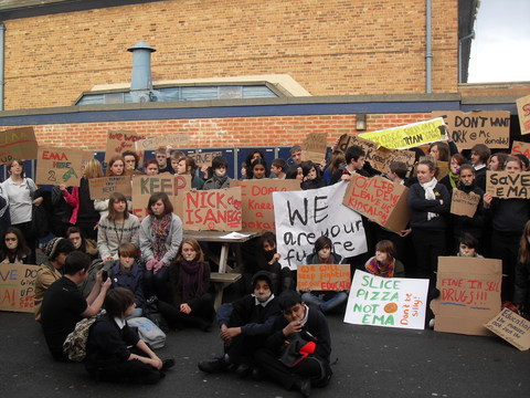 At our school, Beckfoot in Bingley we decided more needed to be done about the cuts so we organised a silent protest in aim of Saving EMA. We got hundreds of students turning up and even some teachers showing their support.