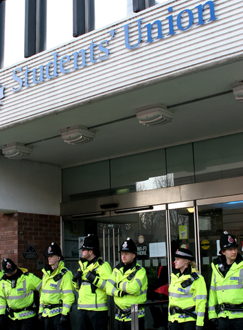 The demonstration, aimed at highlighting the effects of Government spending cuts on young people, started in acrimony when NUS president Aaron Porter withdrew as a speaker when he was surrounded and jostled by angry demonstrators. He eventually took refuge in the students union building.