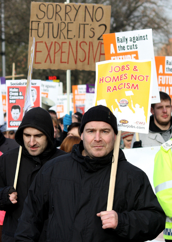 Up to 4,000 protesters gathered peacefully in Manchester on Saturday 29th January to hear claims from union leaders that the Government was "betraying" young people.