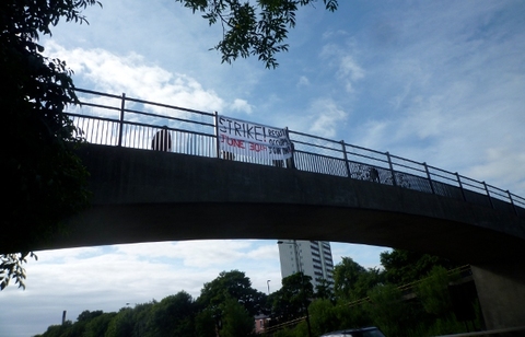 Banners on motorway bridges encourage support for strike action on June 30th.