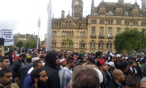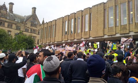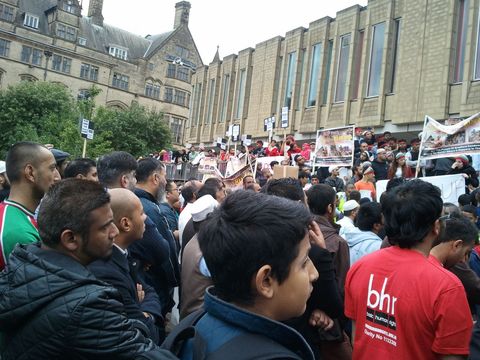 The protest in Centenary Square outside City Hall, Bradford on Monday 13th August 2012 against the Killing of Rohingya people in Burma attracted a large crowd of mostly young people from Bradford and its surrounding areas. This short notice demo with its large crowd is a testament to the way George Galloway reaches out to people. Credit also goes to the young people who worked behind the scene in organising and spreading the word on Twitter, Facebook, by text, e-mail and word of mouth. The big media outlets maybe silent but the voice of the ordinary people cannot be stopped.