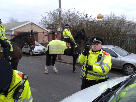 Demonstration called by UAF against a very small turn out from the Scottish Defence League. A very large police opperation "Facilitated the SDL's right to protest".