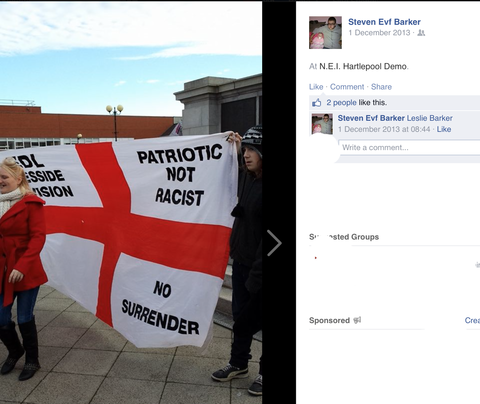 Political History:- Leslie is known to of attended the NEI Berwick demo and regularly poses in photos with his brother Steven Barker with the EVF flag and in a balaclava.