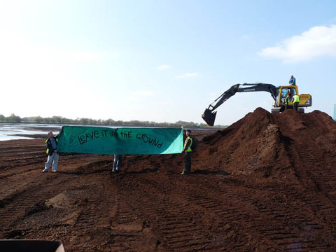 Activists shut down extraction on a Peat Bog extraction site by locking onto a lorry and a digger. Work was still halted at the time of writing.