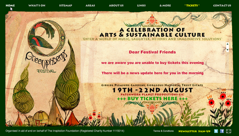 At the time of writing, the festival website is showing the following message. "Dear Festival Friends, we are aware that you are unable to buy tickets this evening. There will be a news update here for you in the morning. With warmest wishes, Green Phoenix Festival."