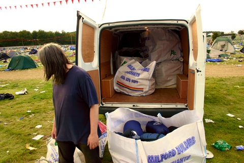 Though these festivals run their own salvage operations, there is so much stuff that is abandoned or willfully destroyed that vast quantities is simply landfilled. Our position is that we really would rather that this was not needed, that people took care of their equipment and recognized the waste of resources that takes place. Given the urgency of the humanitarian need on our streets and in migrant communities across Europe such wastefulness is simply abhorrent. We strongly encourage festival goers to take more responsibility. The chances are that anything abandoned will not end up being salvaged but being bulldozed into a hole in the ground.