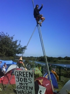 Judi Bari, one of the organisers of the protest, said: "We feel that it is important to voice our support for the workers who's jobs Vestas are cynically taking away. We are concerned that unemployment is very high on the Isle of Wight and about rumours that powerful interests intend to similarly attack the North East's renewable energy industry. It is also our intention to build a working class movement to resist fossil fuelled industrial capitalism and to create a more economically just and environmentally appropriate society. Everyone who supports the workers action in occupying their workplace at Vestas should join this protest which is part of a national day of action called by the workers themselves."