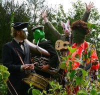 Spodni Pradlo are a 7/8 piece band who enjoy dancing, four part harmonies, a bit of escape, Balkan scales and afro-beats and tend to have a lot of fun laying live! they have shared a stage with Lightspeed Champion, Yeasayer, Make Model, Ida Maria, Cadence Weapon, Duels, Slow Club, Semifinalists, Wild Beasts, The Sugars, Blue roses, naked dancing hippies, huge grotesque paintings of mythical creatures, anarchist flags, Patrick Dowson and many other wonderful things. After their successful times together (including a trip to XL records recording studio, woo!) they are unfortunately having to put performing together on hiatus as different members of the band move on. Guaranteed to have a party atmosphere and some dance-along-to-able saxophone/clarinet tunes.