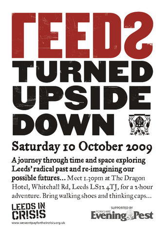 A journey through time and space exploring Leeds' radical past and re-imagining our Leeds' radical past and re-imagining our possible futures... Meet 1.30pm at The Dragon Hotel, Whitehall Rd, Leeds LS12 4TJ.