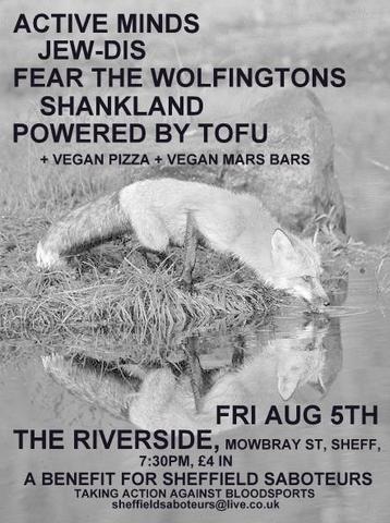 Proceeds to benefit Sheffield Saboteurs - taking action against bloodsports