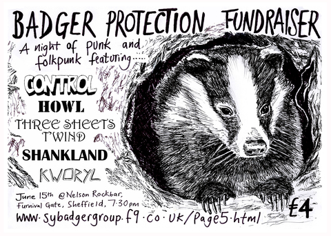 Please come to this gig and help raise some funds for the South Yorkshire Badger Group (see link below), starting with folk, ending hardcore punk!