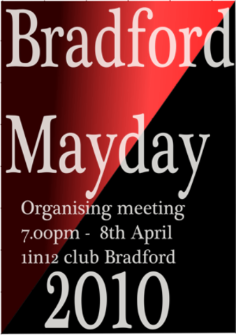 a meeting to discuss our fun plans for Mayday 2010 in Bradford! Come along and join in our adventure. People who want to help out or have some ideas of what they'd like to do very welcome. Starting 7pmish. See you there!