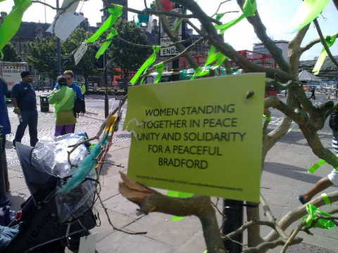 Bradford Women for Peace has adopted the colour lime green to symbolise hope,